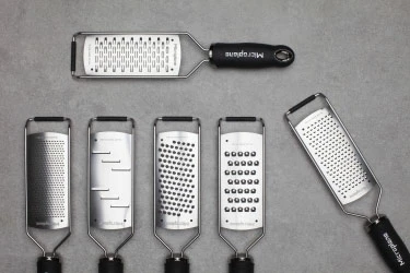 Die Microplane Gourmet-Serie bietet verschiedene Klingenausführungen an: Fein, Mittelgroße Schneide, Große Raspel, Grob, Extra Grob, XL-Grob und Sternenklinge. Eine wiederverwendbare Schutzhülle liegt jedem Modell bei und sorgt für sicheres Verstauen in den Küchenschubladen. Unter fließendem Wasser lassen sich die Küchenhelfer ganz einfach reinigen. Sie eignen sich aber ebenfalls für die Spülmaschine.