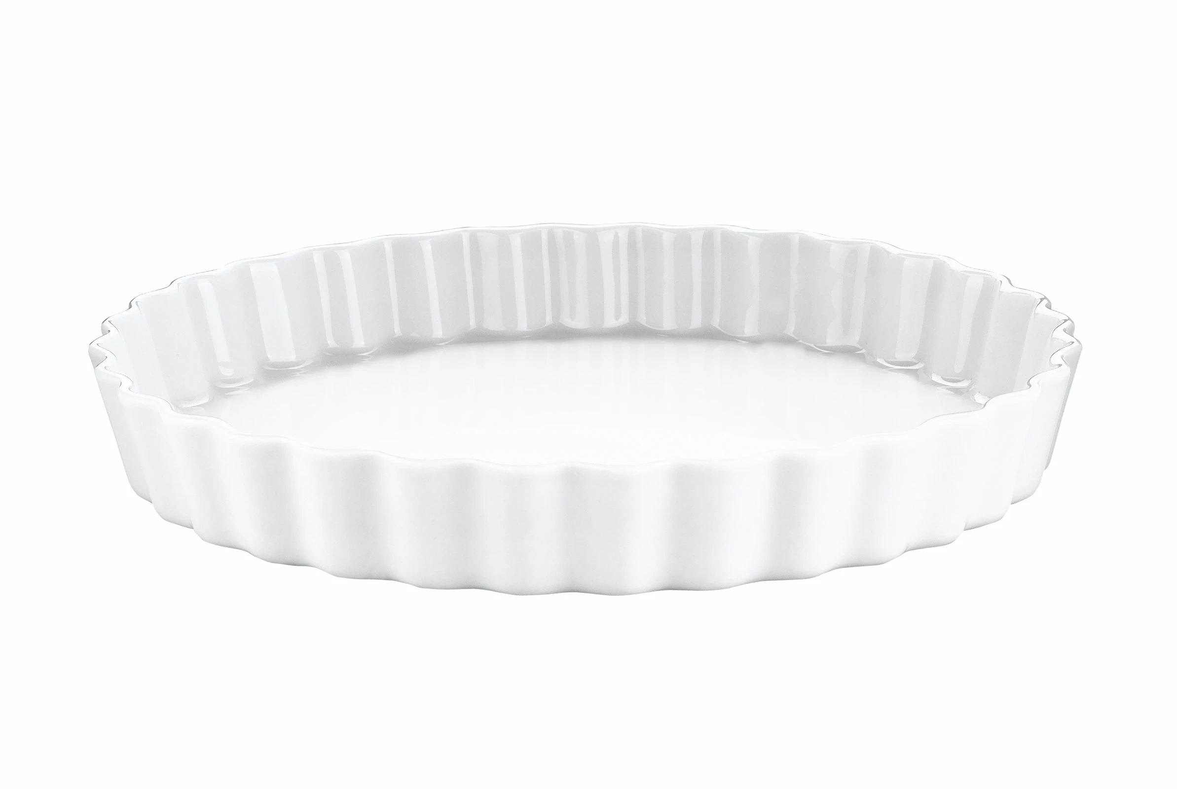 Die Pillivuyt Tarteform No.9 rund 28,5cm aus der Porzellan-Serie Collection Générale ist eine feuerfeste Backform mit 4 cm Höhe. Neben Tortenböden ist sie für alle pikanten und süßen Spielarten von Quiches aus Eiern und Milch geeignet, die im Ofen nicht überlaufen dürfen.