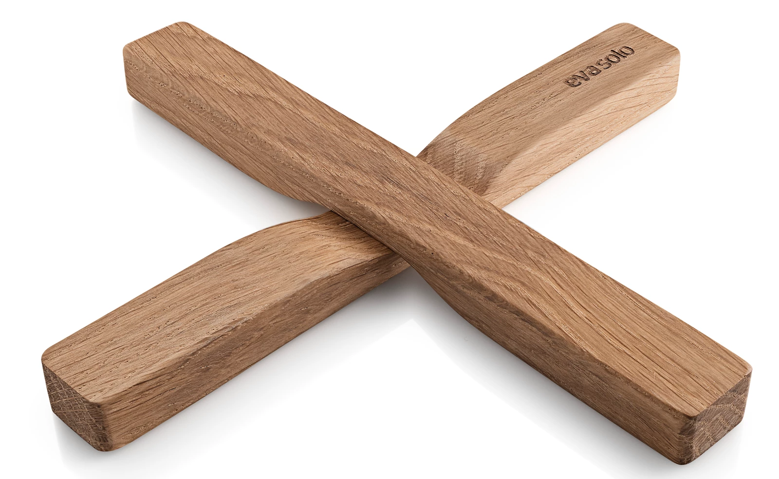 Der magnetische Eva Solo Topfuntersetzer Eiche kann bei Bedarf je nach Größe der Töpfe und Platten entweder über Kreuz verwendet oder in zwei Teile zerlegt werden. Beim Umherreichen der Speisen bleiben die Untersetzer Dank der eingebauten Magneten unter den Töpfen haften und lassen sich nach Gebrauch praktisch und platzsparend in Schubladen verstauen. Einfache Reinigung mit einem feuchten Tuch.