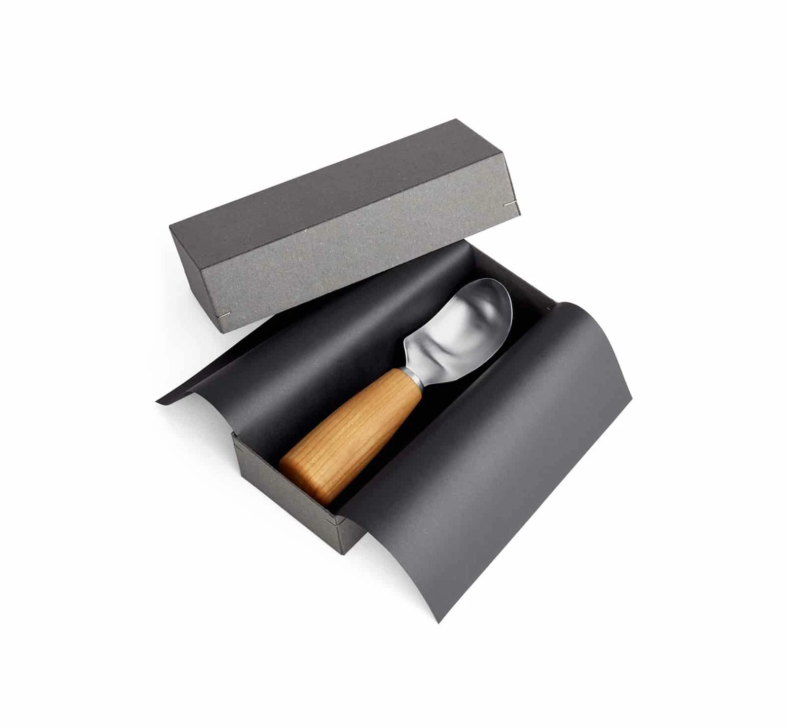 Der Soul Fruchtlöffel mit Pflaumenholz-Griff von Triangle Solingen im Karton