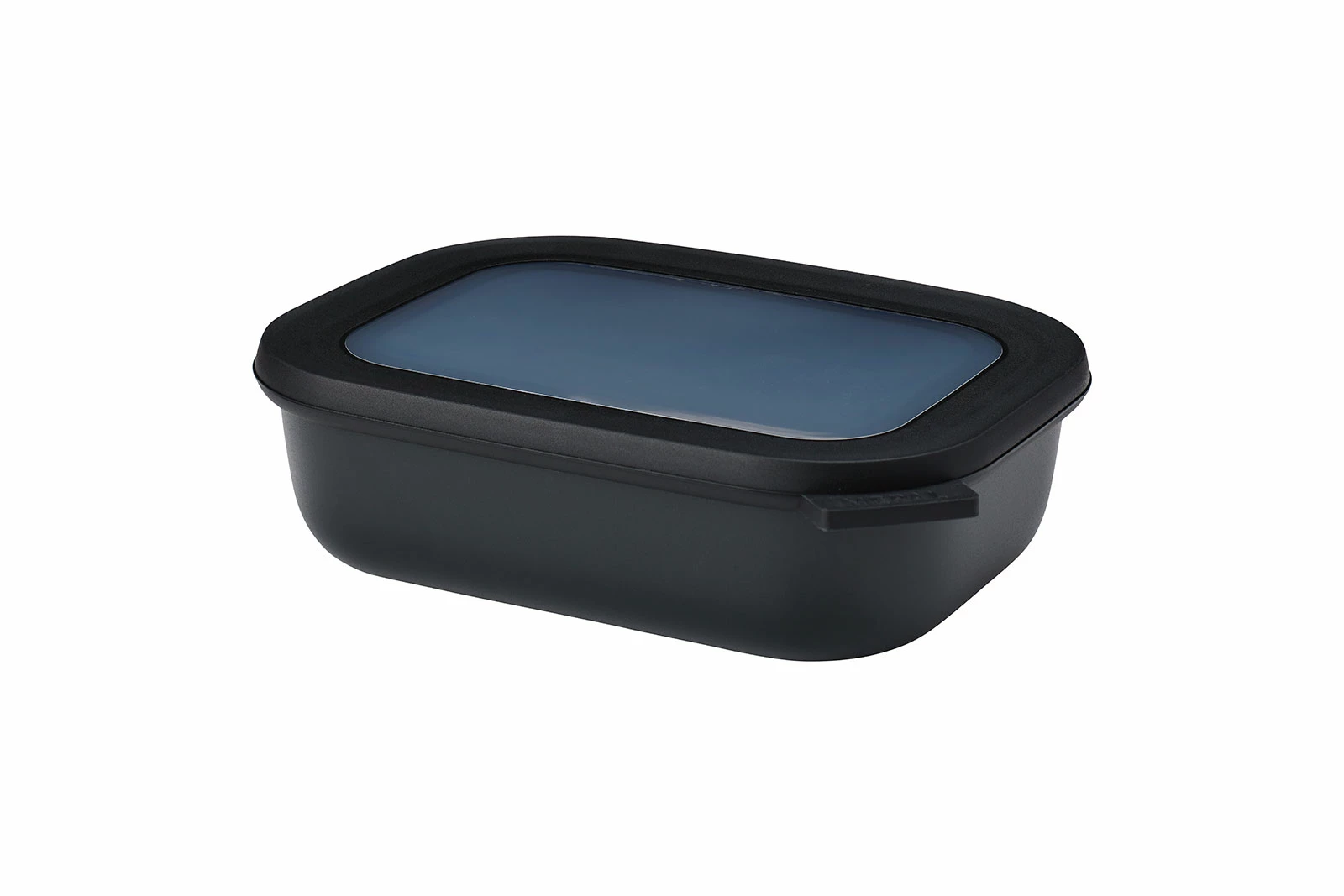 Sie hat die ideale Größe für eine Portion Mittagessen: die eckige Cirqula Multi Bowl 1,00ltr. in nordic black von Mepal. In dieser rechteckigen schwarzen Frischhaltedose können Sie eine Portion Nudeln oder Suppe aufbewahren und aufwärmen. Auch essen können Sie aus ihr, denn aufgrund ihres eleganten Designs sieht die Dose auch auf dem gedeckten Tisch gut aus. Die perfekte Lösung für Meal Prep!