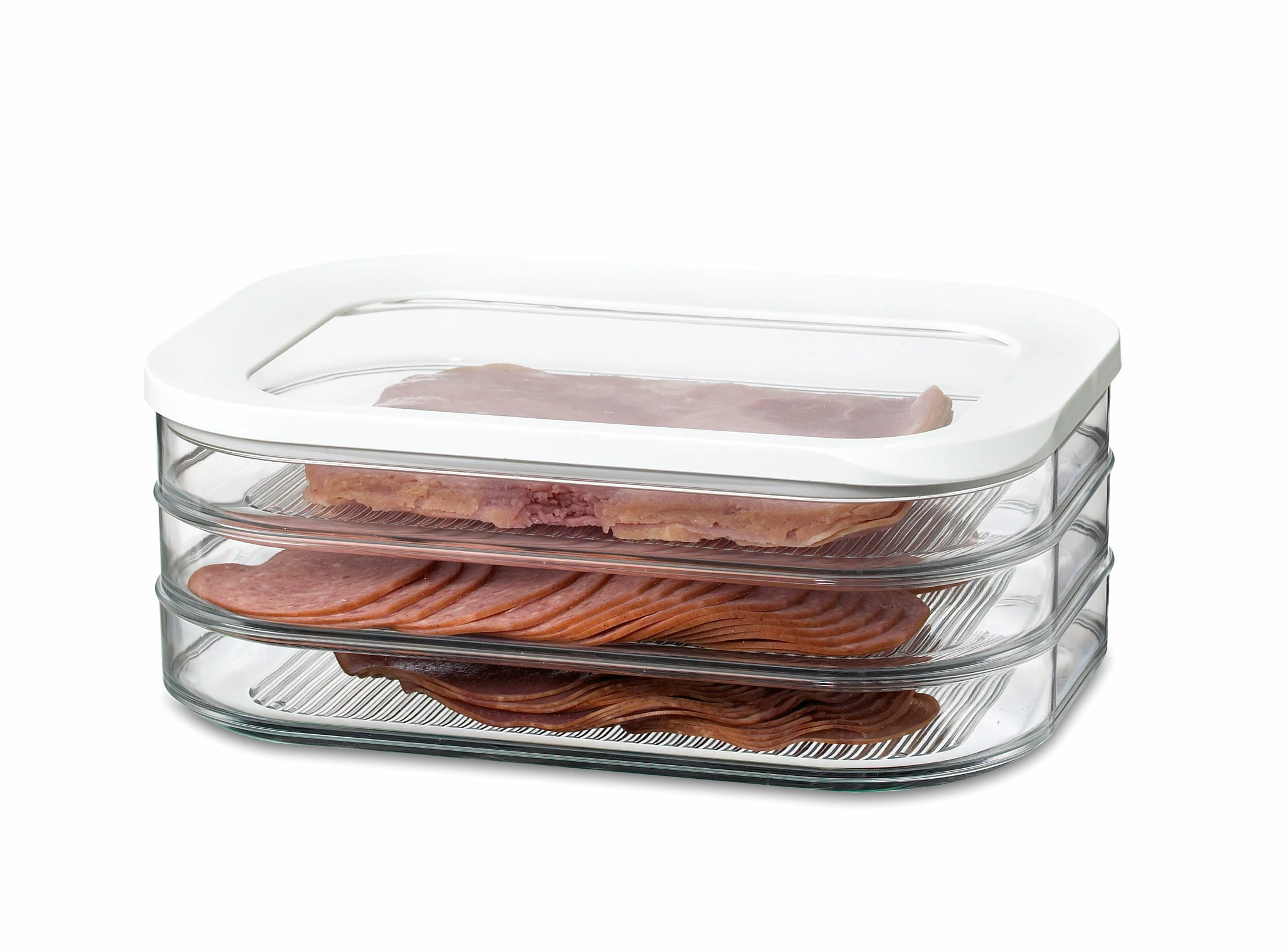 Die Kühlschrankdose Aufschnitt 550/3 klar/weiß aus der Mepal Vorratsdosen-Serie Modula