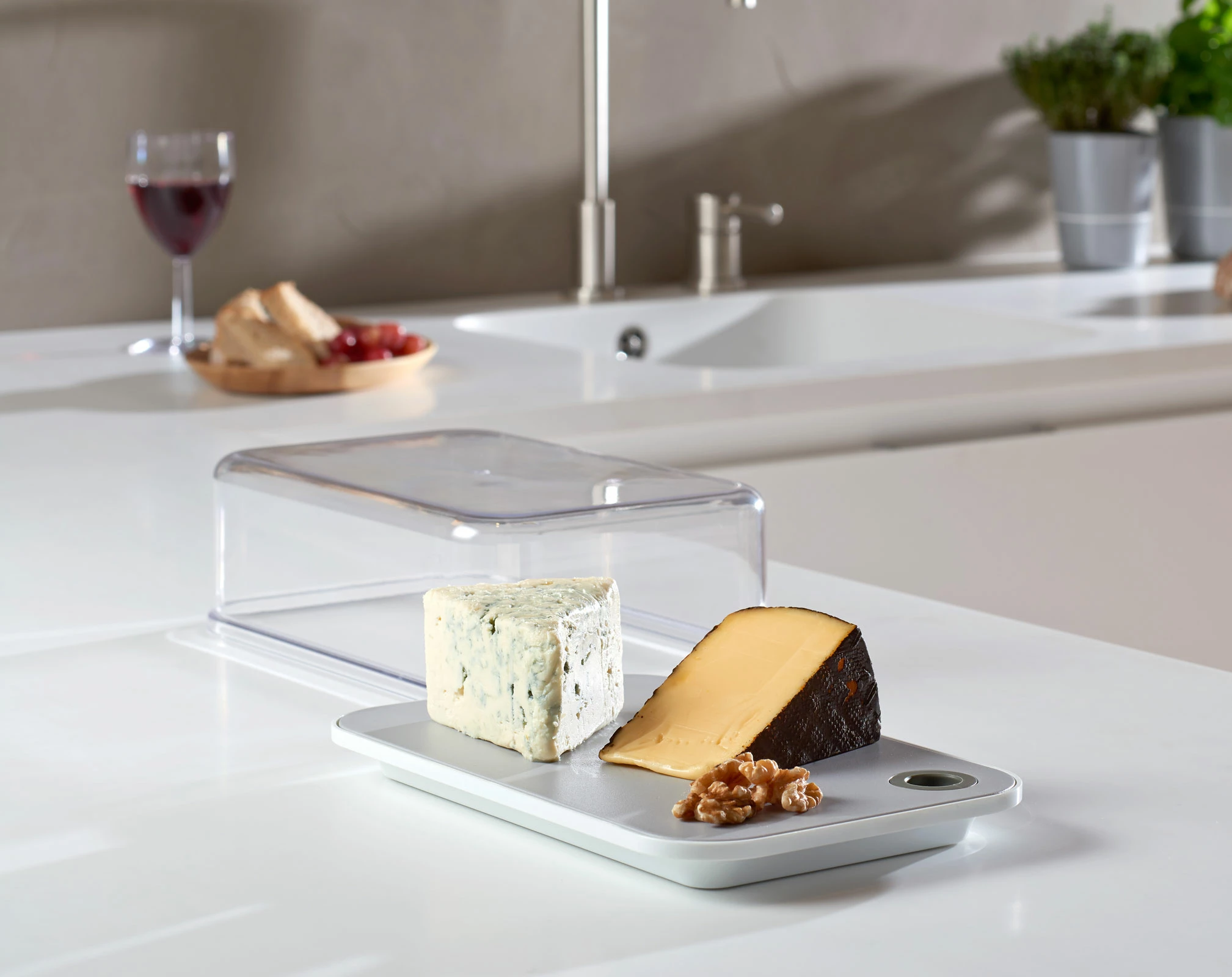 Mit der großen Modula Servierbox von Mepal haben Sie immer den Durchblick, was den Inhalt Ihres Kühlschranks angeht. Der durchsichtige Deckel zeigt Ihnen genau, was Sie in ihr gerade aufbewahren. Ideal auch für den Übergang von Kühlschrank zu Esstisch: Das graue Servierbrett, das den Boden dieser Dose bildet. Ist der Deckel einmal abgenommen, können Sie es gleich auf den Tisch stellen. Toll für die Lagerung von Aufschnitt!