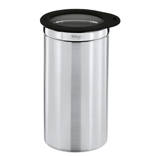 Die edle Rösle Kaffeedose mit Frischhaltedeckel 10×19,5cm ist mit dem Edelstahlkorpus aus ideal geschmacksneutralem Material. Der unzerbrechliche Rösle Frischhaltedeckel aus Glas mit flexiblem Silikonrand schmiegt sich luftdicht an die Gefäßwände an, damit die Speisen länger appetitlich geschützt, aromadicht und frisch bleiben.